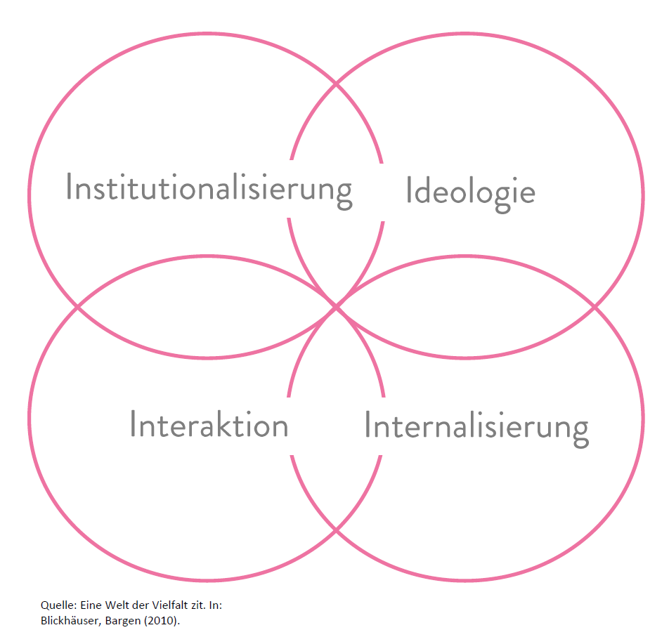 "Diskriminierung ist die ungleiche, benachteiligende und ausgrenzende Behandlung von Menschen. Diskriminierung kann sich beispielsweise als Ausgrenzung oder Benachteiligung beim Zugang zu Gütern und Möglichkeiten zeigen. Diskriminierung ist nicht auf individuelles Handeln beschränkt, sondern auch in Strukturen verankert. Diskriminierung kann auf unterschiedlichen Ebenen stattfinden: auf gesellschaftlich-kultureller (ideologischer), institutioneller, interpersoneller (in Interaktion z. B. Anwertung) und intrapersoneller (internalisierter) Ebene." (in Anlehnung an IDA e.V.)